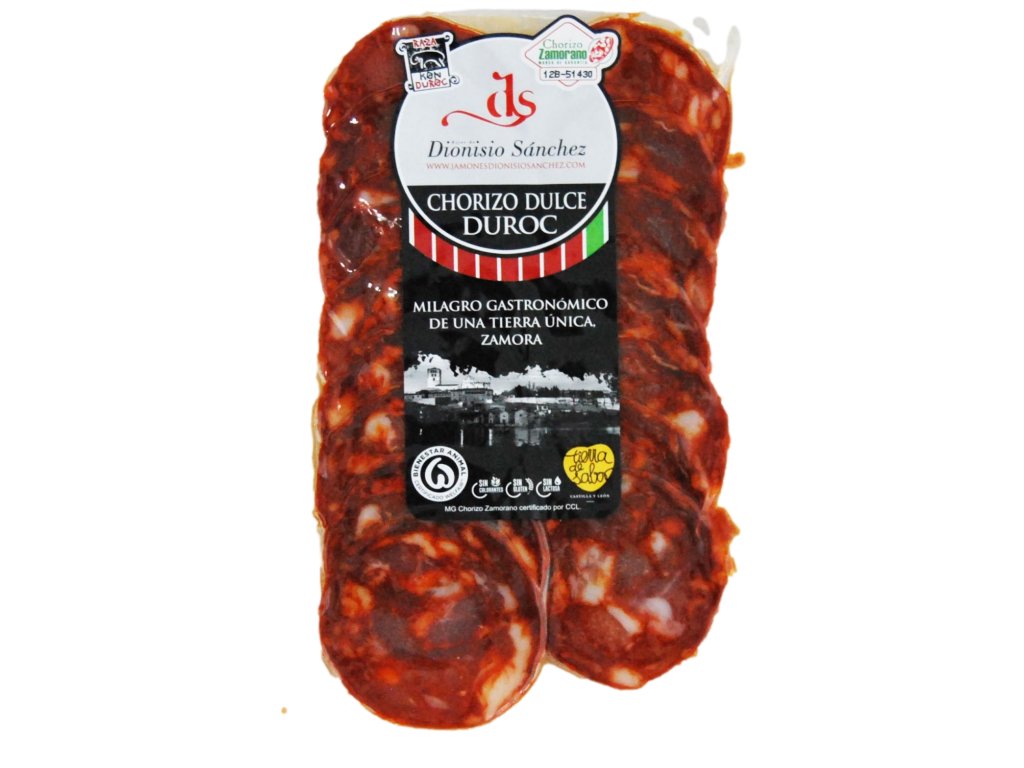 Složení: Vepřové maso a sádlo, paprika, sůl, rostlinná bílkovina, dextrin, rostlinná vláknina škrob, koření, cukr, stabilizátory (E451, E450), antioxidant (E316), konzervanty (E252, E250), barvivo (E120), kouřové aroma