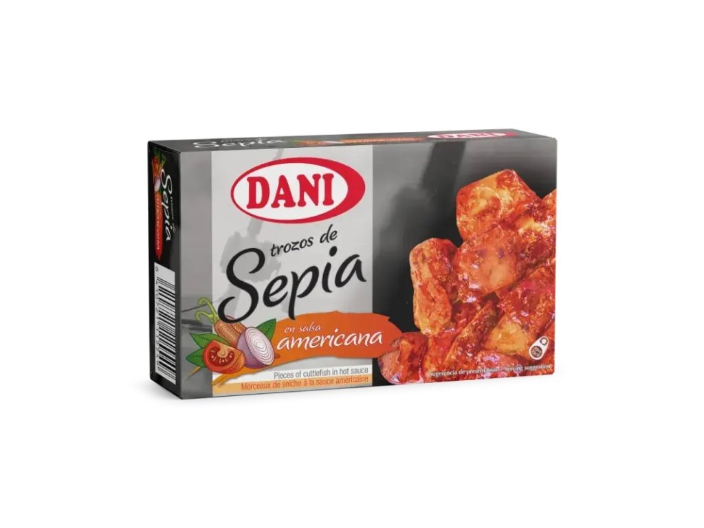 Složení: Sepie, rajče, slunečnicový olej, cibule, bílé víno, cukr, koření, sůl. Může obsahovat ryby a korýše.