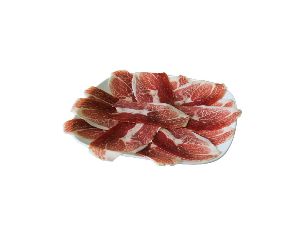 Složení: vepřová šunka cebo ibérico, mořská sůl, cukr, konzervanty (E-252 a E-250), dextróza a antioxidant (E-301).